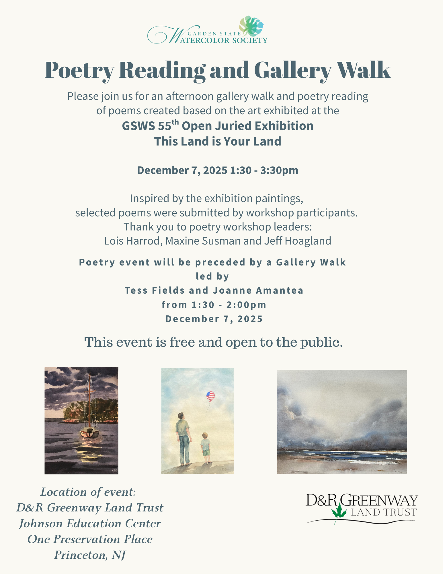 A selection of poems created in the fall poetry workshops will be featured in the poetry reading Sunday, December 7 from 1:30pm to 3:30pm.