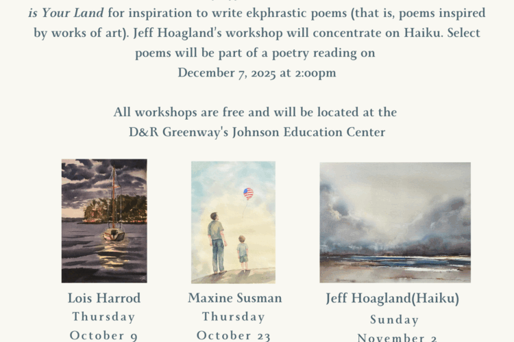 Published local poets will lead free workshops in the Johnson Education Center galleries; join us! Participants will learn about poetry writing and use the exhibition ‘This Land is Your Land’
